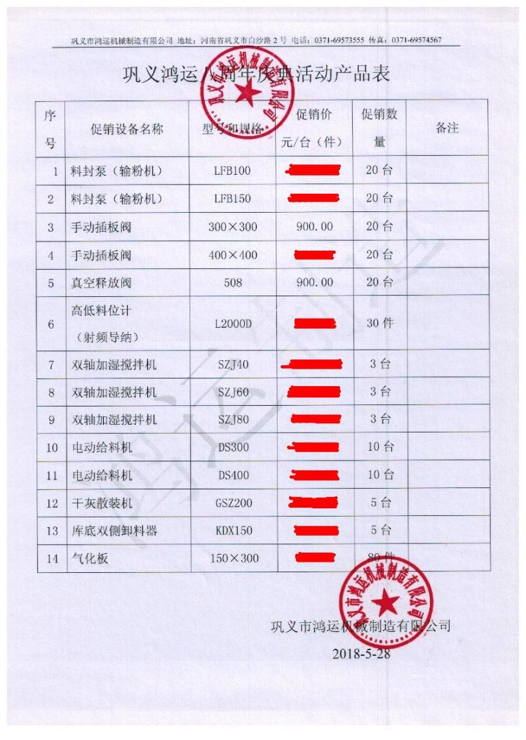本公司 鞏義市鴻運(yùn)機(jī)械制造有限公司 成立至今已經(jīng)歷8年風(fēng)雨,因有了廣大用戶的支持與幫助,歷經(jīng)8年公司達(dá)到了今天的高峰;公司8周年慶典之際,公司為感恩回饋新老客戶,對公司部分產(chǎn)品推出低價(jià)感恩活動(dòng);活動(dòng)時(shí)間為期30天(2018年5月29日至2018年6月30日);數(shù)量有限先到先得,望廣大新老客戶把握良機(jī);(不接受口頭訂單),具體價(jià)格來電來函回復(fù)原件,非誠勿擾。